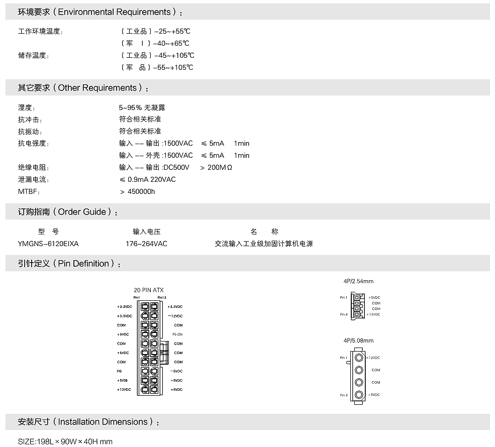 1U交流输入加固计算机电源(一)