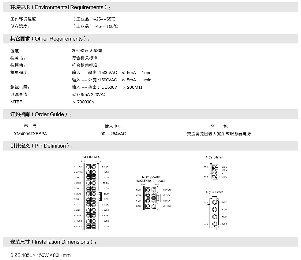 交流输入冗余式服务器电源